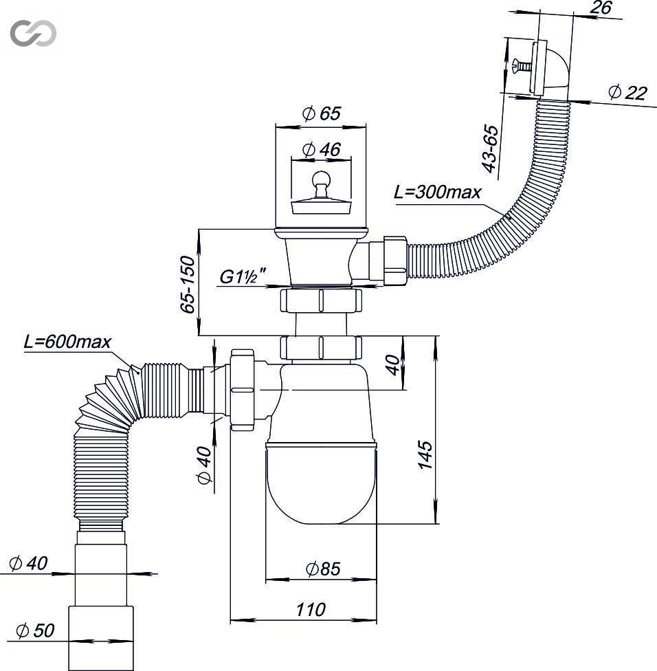 Шланг перелива гофрированный L=290мм, шт | 1 |