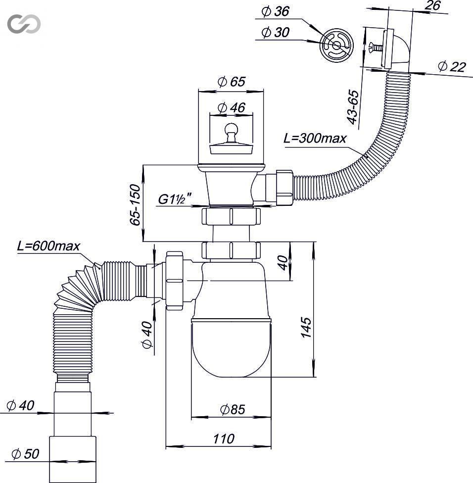 Шланг перелива гофрированный L=290мм, шт | 1 |